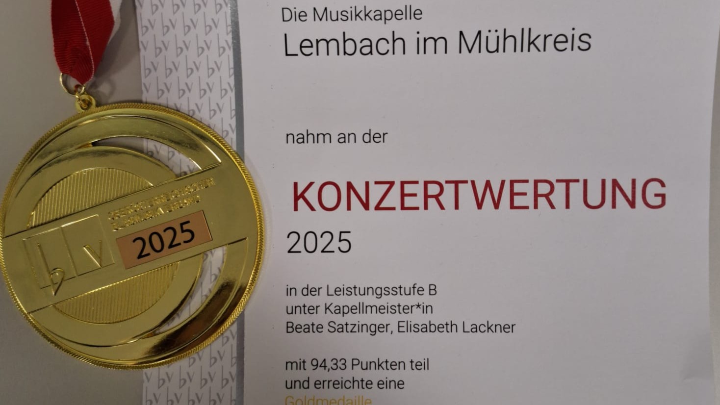 Voller Erfolg bei den Bläsertagen in der ADH! Wir – der MV Lembach – holten mit unseren Stücken „Nora“, „Zillertal-Suite“ und „The Greatest Show“ eine Goldmedaille mit sensationellen 94,33 Punkten.